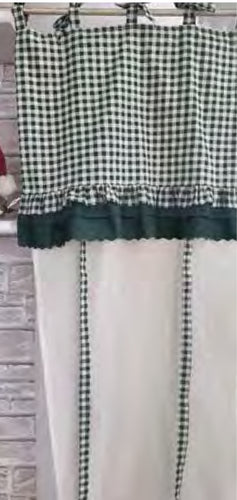 Coppia 2 Tende portafinestra Quadretti con Volant e Pizzo Stile Country Chic 60 x 240 cm