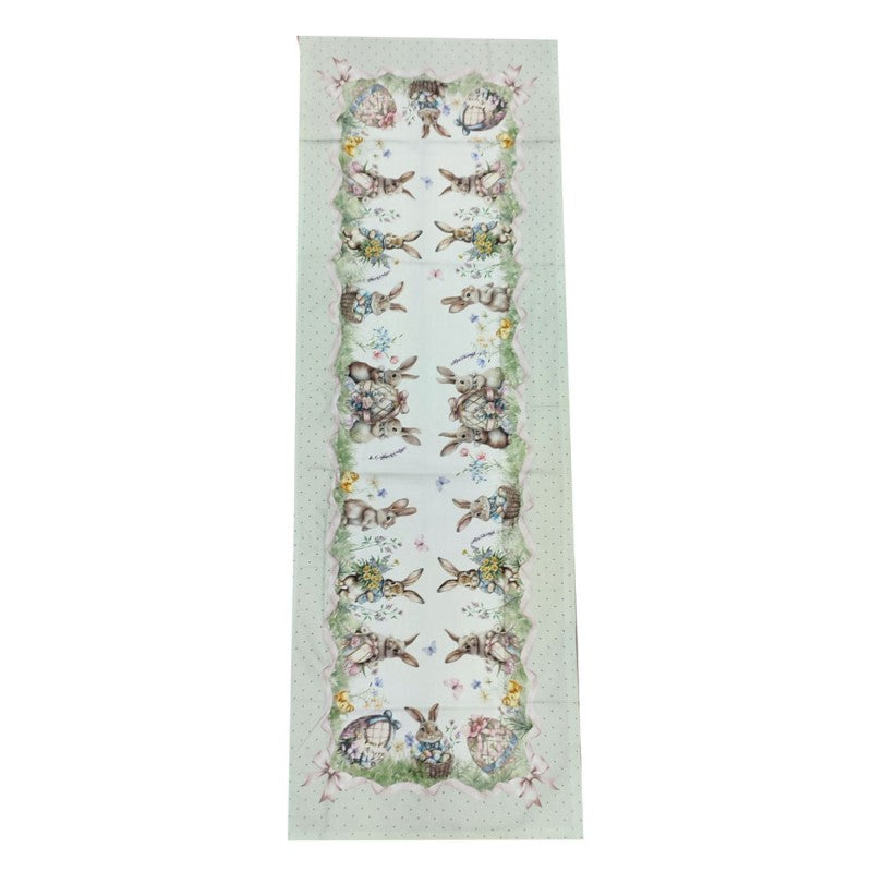 Simpatico runner centrotavola in cotone xcon stampa digitale decorazioni pasquali con conigli e fiori