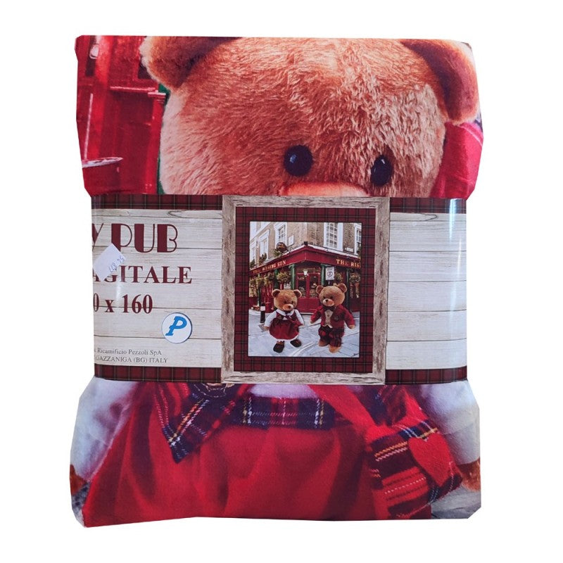 Plaid in pile agnellato digitale Teddy 100% Poliestere, 130x160cm, stampa digitale. Pile morbidissimo e confortevole, doppio strato composto da una parte con disegno e una parte agnellato in tinta unita grigio.