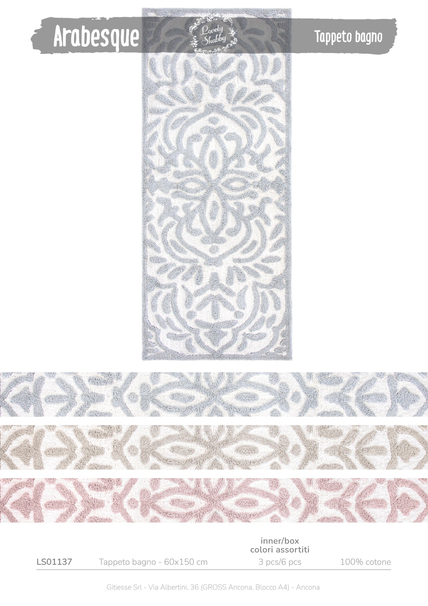 Il tappeto Arabesque proposto dalla Lovely Shabby è perfetto per corridoi, ingressi, bagni o per qualsiasi altro ambiente della casa. Questo soffice tappeto di forma rettangolare è realizzato in puro cotone al 100%. Trasforma il tuo spazio con il Tappeto Arabesque, dove eleganza e funzionalità si incontrano in perfetta armonia.