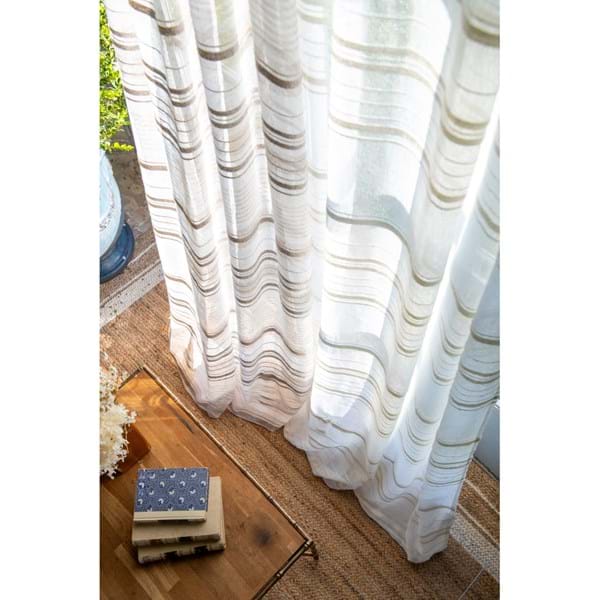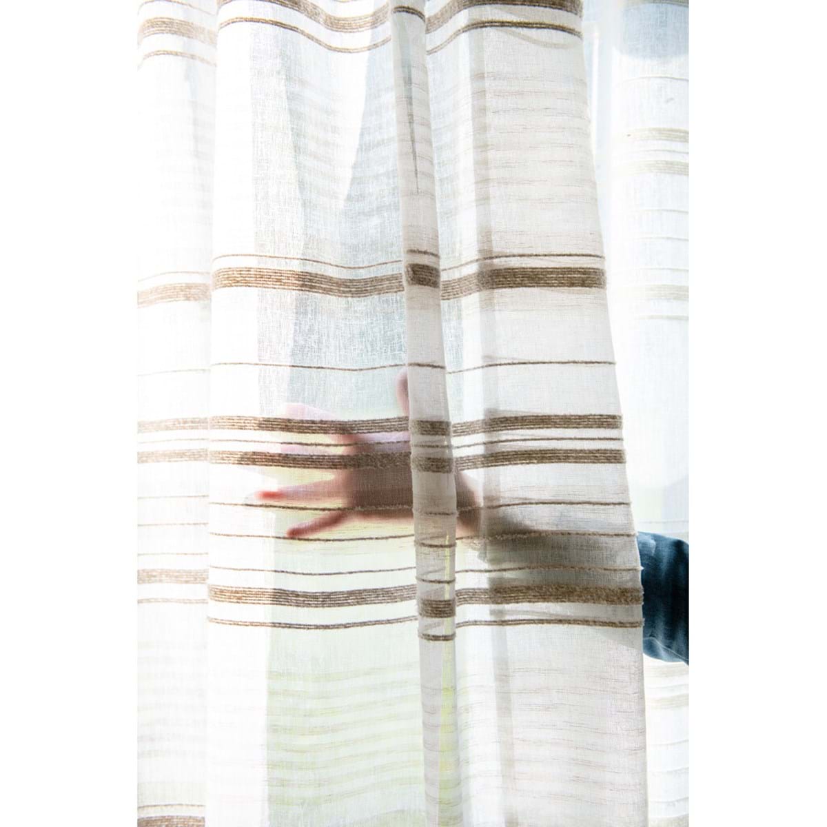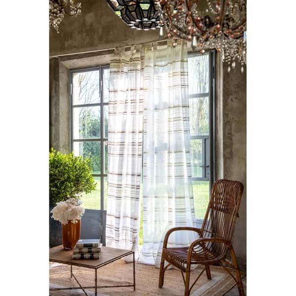 Tenda Blanc MariClo' a strisce color bianco. Il suo tessuto leggero e il colore neutro creano un effetto raffinato e luminoso, perfetto per arredare con stile anche gli ambienti più semplici. Il tessuto filtra la luce naturale con delicatezza, creando un'atmosfera accogliente e ariosa senza rinunciare alla privacy.